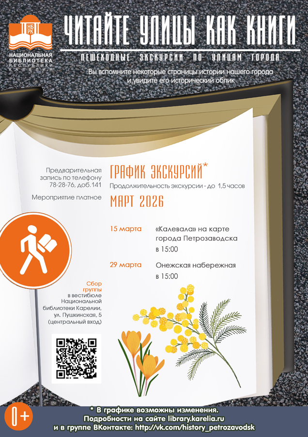 15 марта в 15:00 Национальная библиотека Карелии и проект «Читайте улицы как книги!» приглашают на интеллектуальную прогулку «Калевала» на карте города Петрозаводска».