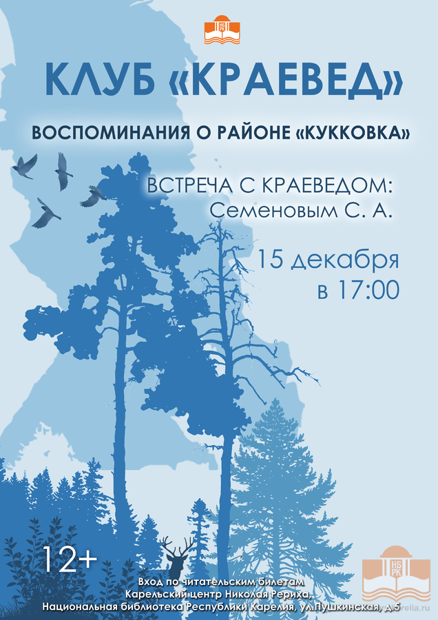 15 декабря в 17:00 в Национальной библиотеке Карелии состоится заседание клуба «Краевед». Краевед Сергей Анатольевич Семенов представит свои воспоминания о Петрозаводском районе Кукковка и покажет несколько старых фотографий.