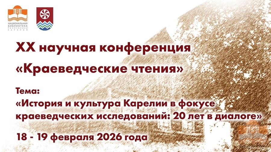 18 - 19 февраля 2026 года Национальная библиотека Республики Карелия проводит XX научную конференцию «Краеведческие чтения». Тема конференции: «История и культура Карелии в фокусе краеведческих исследований: 20 лет в диалоге».