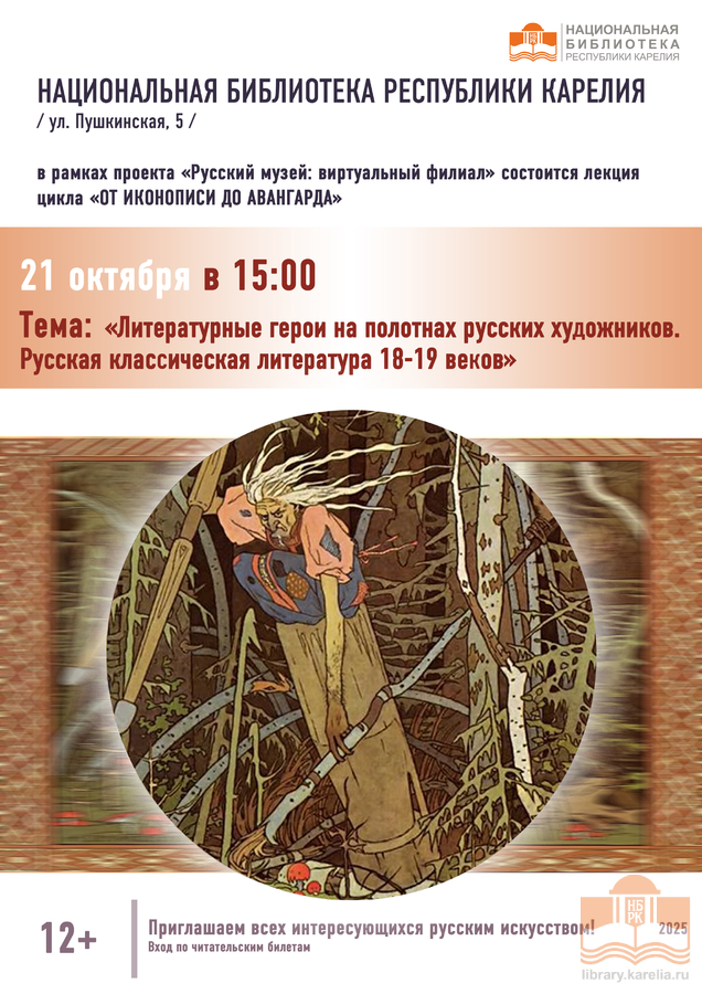 21 октября в 15:00 Национальная библиотека приглашает на третье занятие цикла «Литературные герои на полотнах русских художников» в рамках проекта «Русский музей: виртуальный филиал».