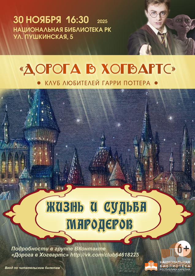 30 ноября в 16:30 на юношеском абонементе Национальной библиотеки Карелии состоится новая встреча в клубе любителей Гарри Поттера «Дорога в Хогвартс».