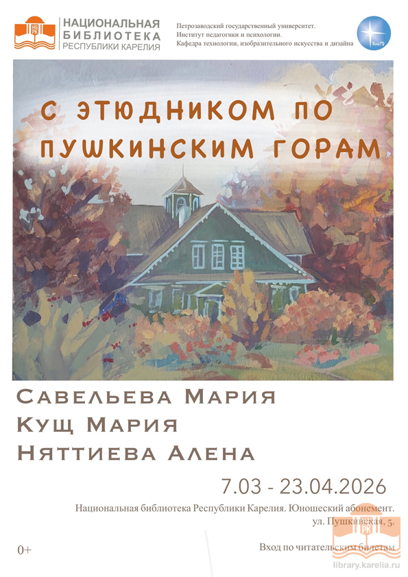 7 марта в 12:00 на юношеском абонементе Национальной библиотеки Карелии состоится открытие выставки «С этюдником по Пушкинским горам».