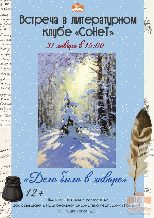 31 января в 15:00 литературный клуб «СоНеТ» ждет любителей поэзии на новую встречу. Январская тема будет называться «Дело было в январе…».