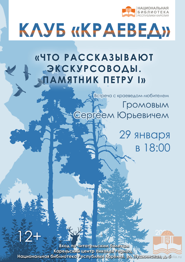 29 января в 18:00 клуб «Краевед» Национальной библиотеки Карелии приглашает всех любителей истории родного края на новую встречу, посвященную памятнику Петру I, установленному на набережной Петрозаводска.