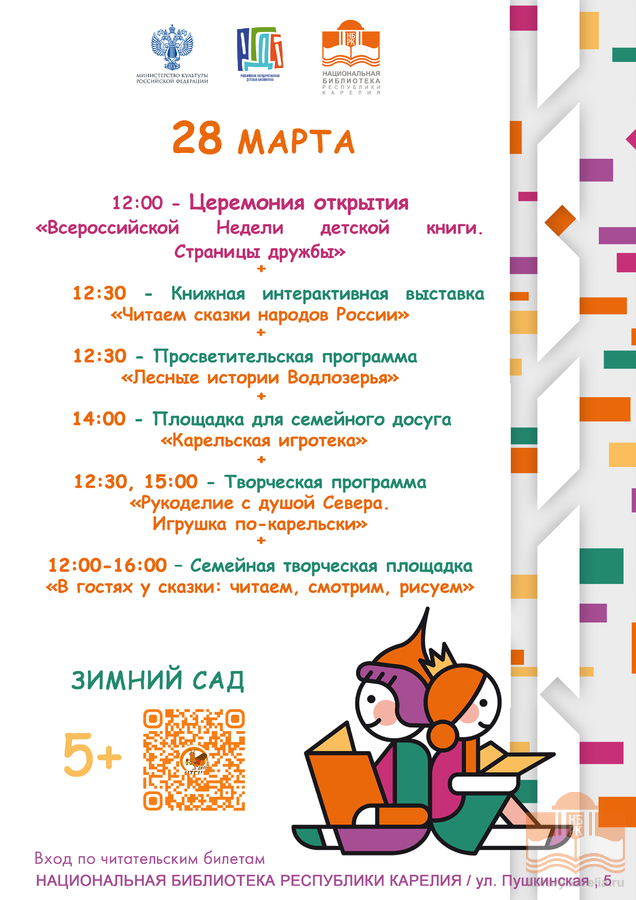 12:00 – Церемония открытия «Всероссийской Недели детской книги. Страницы дружбы», 5+