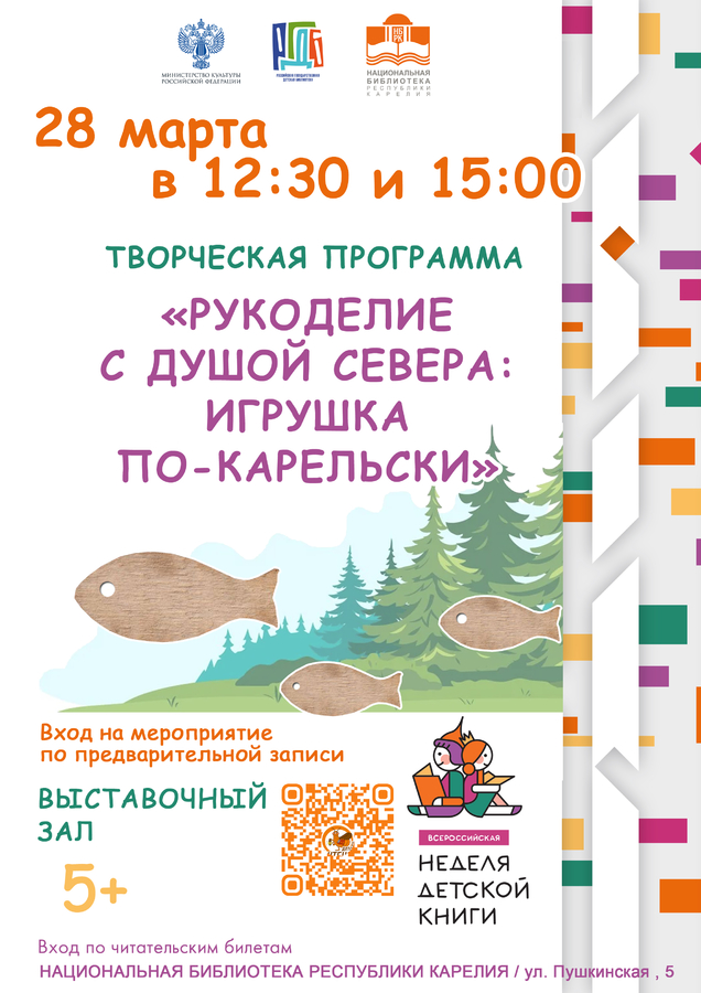 12:30, 15:00 –Творческая программа «Рукоделие с душой Севера. Игрушка по-карельски», 5+
