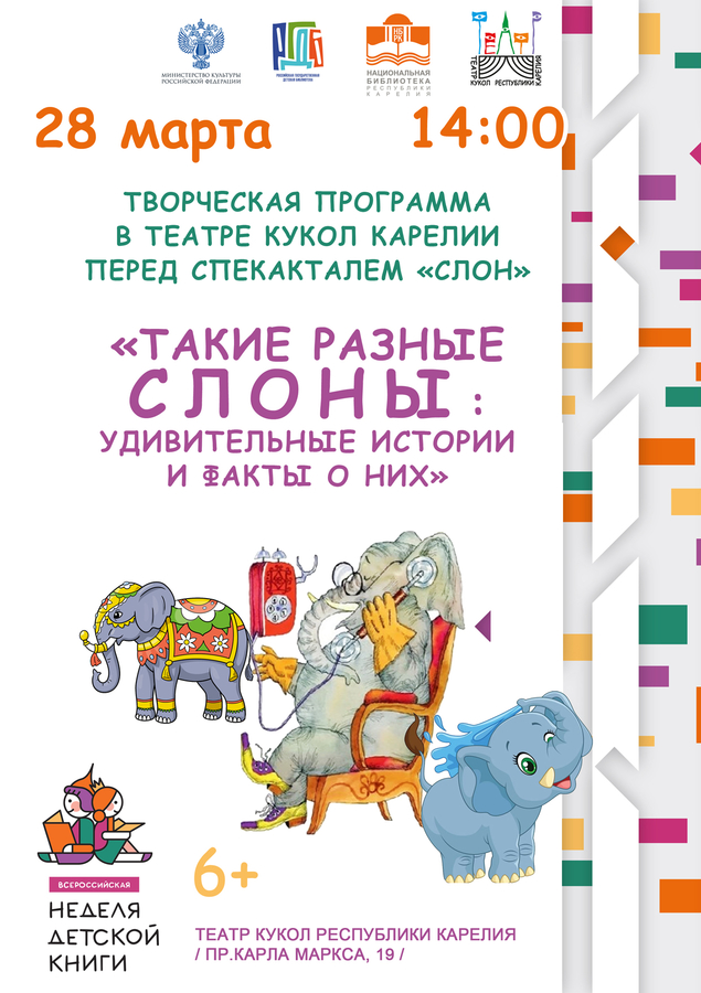 13:30 – Игровая программа» «Такие разные слоны: удивительные истории и факты о них», 7+