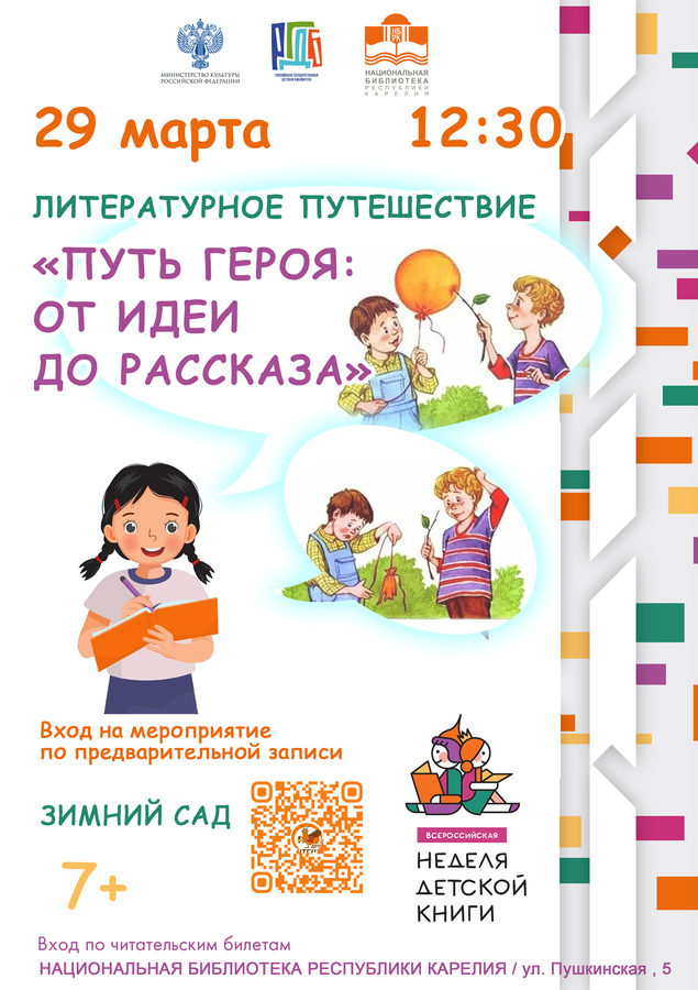 12:30 – Литературное путешествие «Путь героя: от идеи до рассказа», 7+