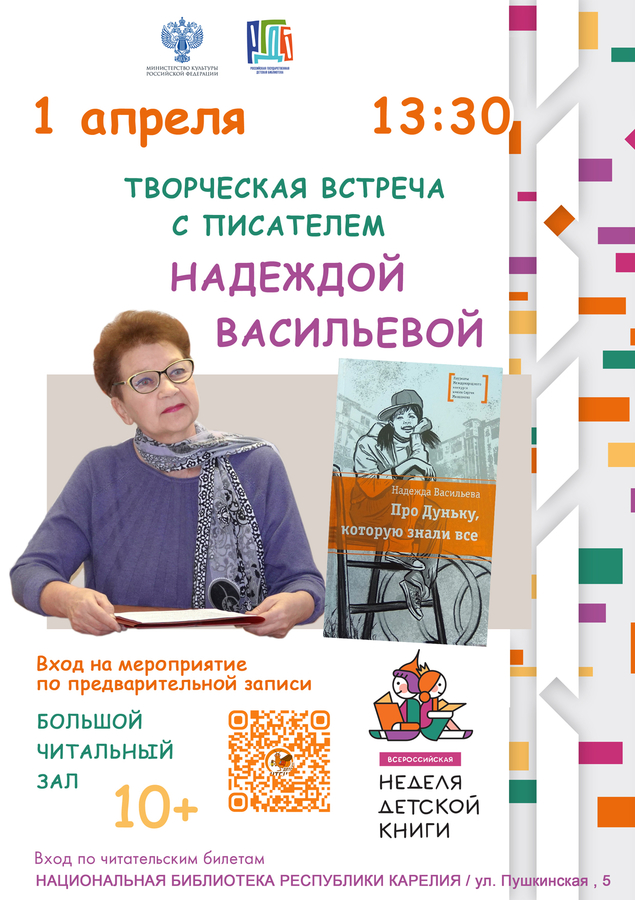 13:30 –Творческая встреча с Надеждой Борисовной Васильевой, 10+