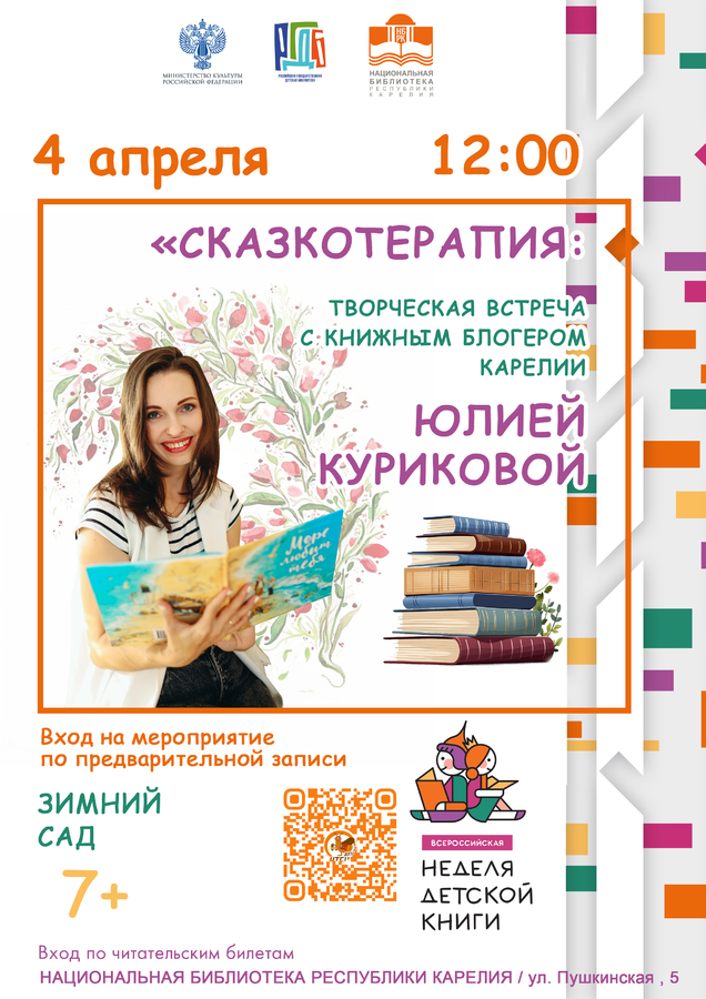 12:00 – Сказкотерапия: творческая встреча с книжным блогером Карелии Юлией Куриковой, 7+
