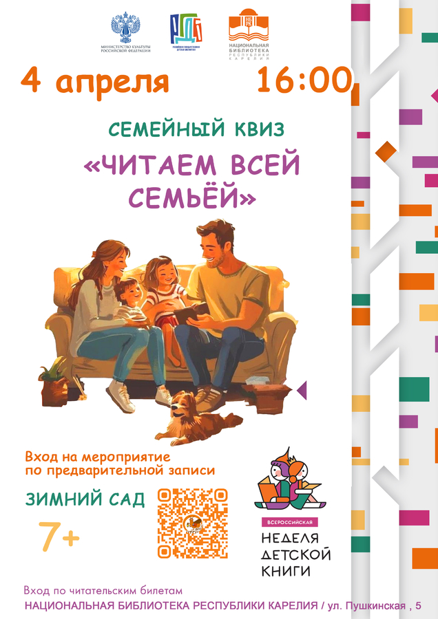 16:00 – Семейный квиз «Читаем всей семьей», 7+