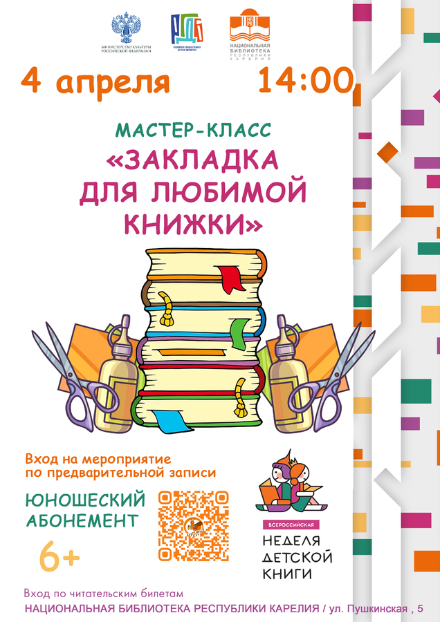 14:00 – Мастер-класс «Закладка для любимой книжки», 6+