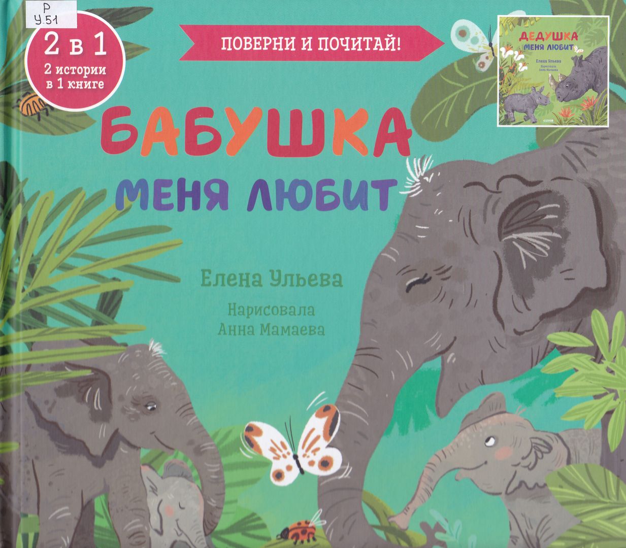 Бабушка меня любит ; Дедушка меня любит : для чтения взрослыми детям / Елена Ульева ; художник Анна Мамаева. - Москва : Clever : Клевер-Медиа-Групп, 2023. - [15], [17] с. встреч. паг. : цв. ил. ; 26х25 см. - (2 в 1) (Поверни и почитай!) (Семейные ценности) (Книга-перевёртыш). - ISBN 978-5-00211-052-0. - Текст : непосредственный