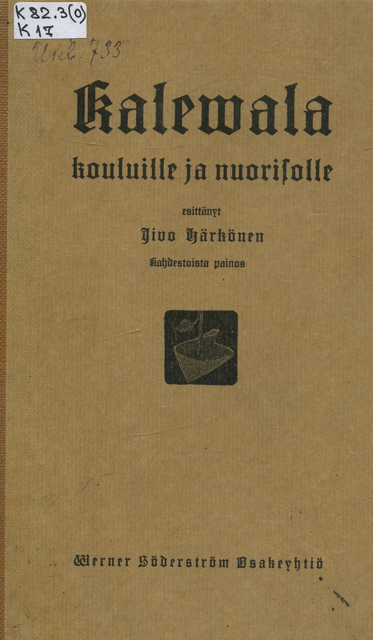 K 17 Kalevala : kouluille ja nuorisolle / Kalevala-ottein ja omin sanoin esit. Iivo Härkönen. - 18. pain. - Porvoo ; Helsinki : Werner Söderström Osakeyhtiö, 1939. - 160 c. ; 19 см. - Текст фин.