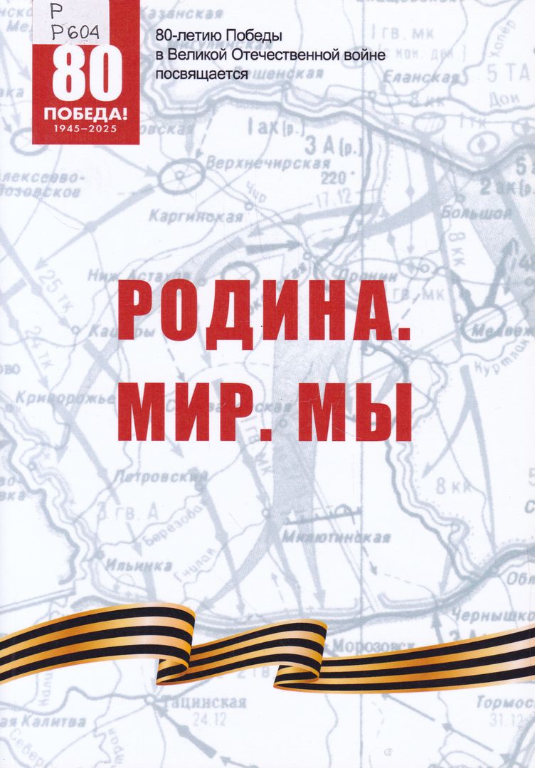 | Р Р 604 Родина. Мир. Мы : сборник стихов и рассказов / Некоммерческий фонд "Новое образование" ; составитель Г. В. Степанова. - Петрозаводск : Новое образование, 2024. - 180, [1] с. ; 21 см. - 80 Победа! 1945 - 2025. 80-летию Победы в Великой Отечественной войне посвящается. - Текст : непосредственный Представленные в этом сборнике стихи и рассказы - развеивают облака, впускают солнце в души людей, любящих русское слово, гордящихся историей России, ее державным настоящим. Все произведения сборника собраны участниками проекта "В памяти поколений герои Победы". Возрастные ограничения: 12+ <РУСМАРК> |
