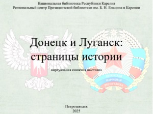 Донецк и Луганск: страницы истории Национальная библиотека Республики Карелия Региональный центр Президентской библиотеки им. Б. Н. Ельцина в Карелии Петрозаводск 2025 виртуальная книжная выставка
