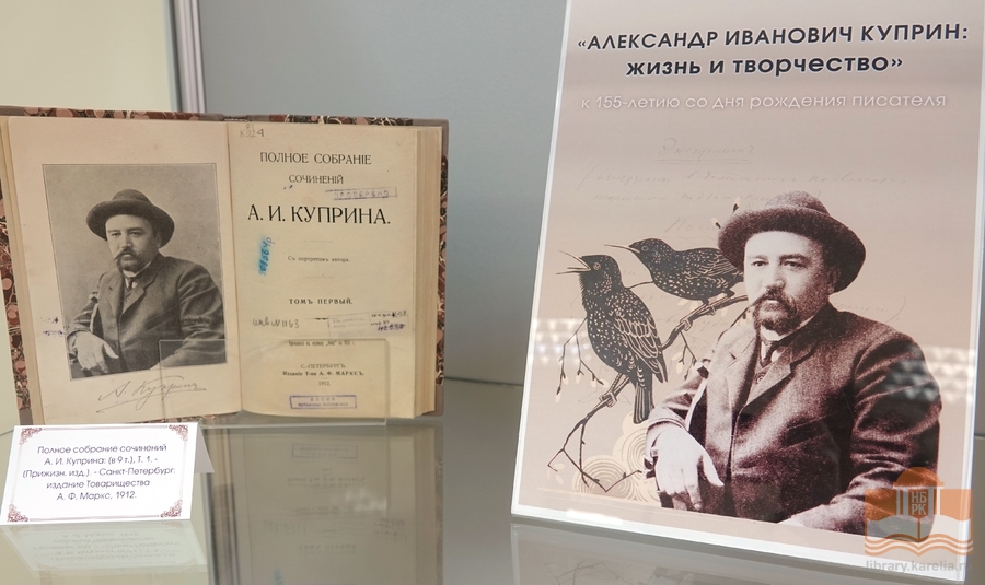 11 ноября в секторе редких книг Национальной библиотеки Карелии открылась книжная выставка, посвященная 155-летию со дня рождения русского писателя Александра Ивановича Куприна (1870 - 1938).