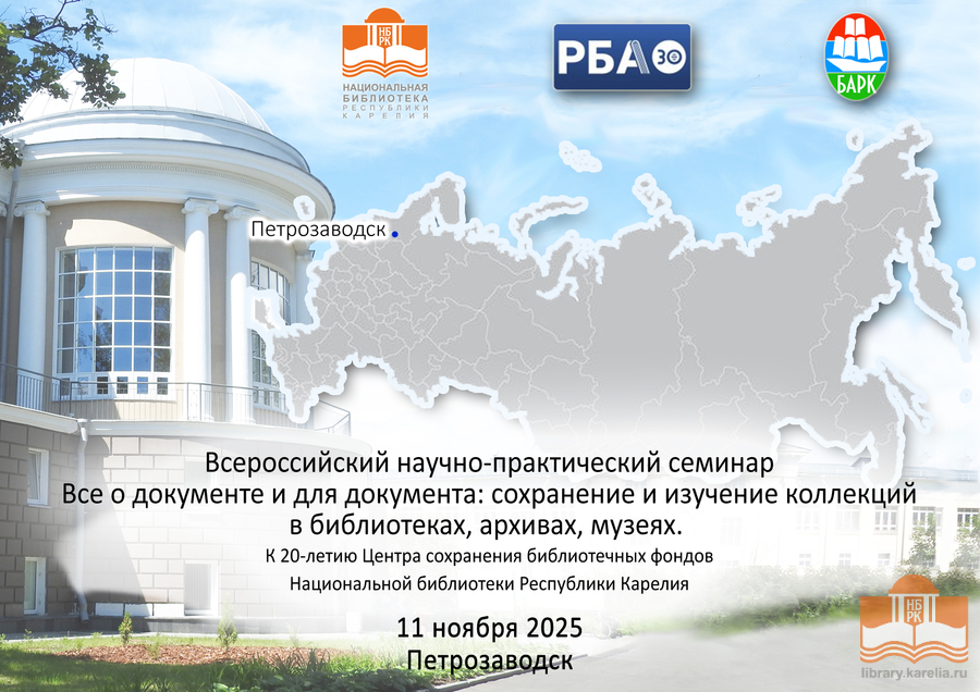 В Национальной библиотеке Республики Карелия завершился ежегодный Всероссийский научно-практический семинар «Все о документе и для документа». Мероприятие прошло при информационной поддержке Российской библиотечной ассоциации, организационной поддержке Министерства культуры Республики Карелия и Библиотечной ассоциации Республики Карелия.