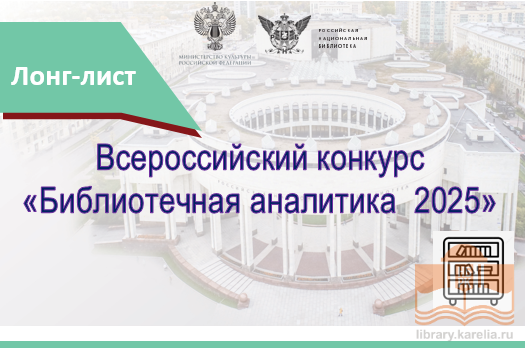 Национальная библиотека Карелии ежегодно участвует во Всероссийском конкурсе «Библиотечная аналитика–2025» с докладом о деятельности муниципальных библиотек Республики Карелия. По итогам работы Жюри конкурса доклад Национальной библиотеки вошел в лонг-лист в числе тридцати пяти работ центральных регаиональных библиотек.