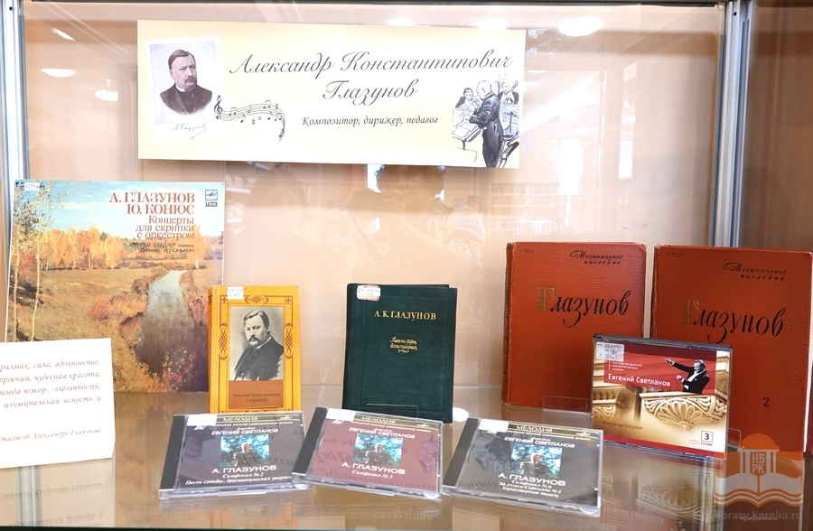 В Национальной библиотеке, на кафедре музыкально-нотной литературы открылась выставка «Александр Константинович Глазунов: композитор, дирижер, педагог». Выставка посвящена 160-летию со дня рождения великого русского композитора и приурочена к Глазуновским дням в Петрозаводской государственной консерватории, носящей его имя.