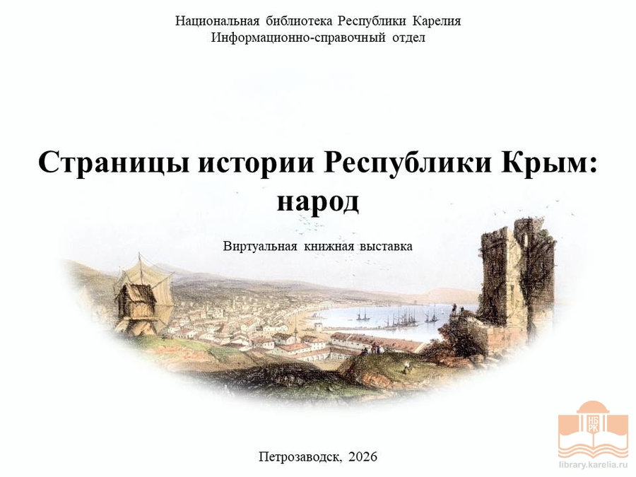 Национальная библиотека Карелии предлагает вниманию читателей виртуальную книжную выставку «Страницы истории Республики Крым: народ». В информационном ресурсе представлены книги из фонда Национальной библиотеки, цифровые копии изданий из Национальной электронной библиотеки, Президентской библиотеки имени Б. Н. Ельцина.