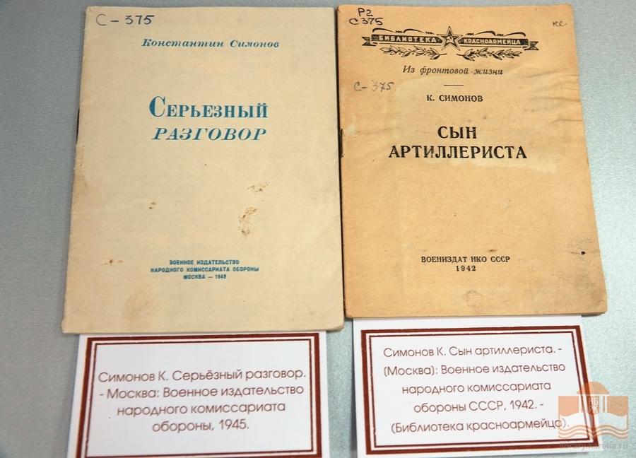 На выставке читатели увидят прижизненные сборники стихов и прозы К. Симонова, изданные в годы Великой Отечественной войны. Приглашаем всех желающих ознакомиться с выставкой в сектор редких книг.