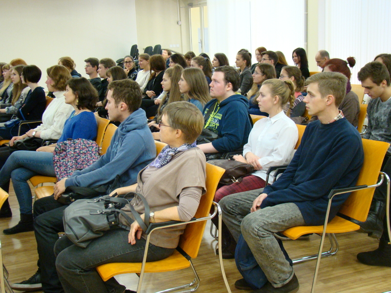 В конференц-зале библиотеки собрались преподаватели и студенты филологического факультета и Института иностранных языков Петрозаводского университета, все те, кто интересуется немецкой литературой.