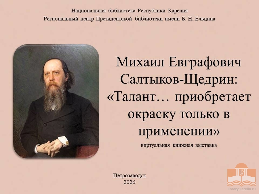 Предлагаем вниманию читателей виртуальную книжную выставку «Михаил Евграфович Салтыков-Щедрин: «Талант… приобретает окраску только в применении», посвященную 200-летию со дня рождения писателя.
