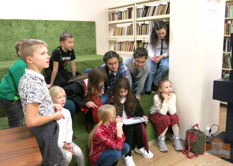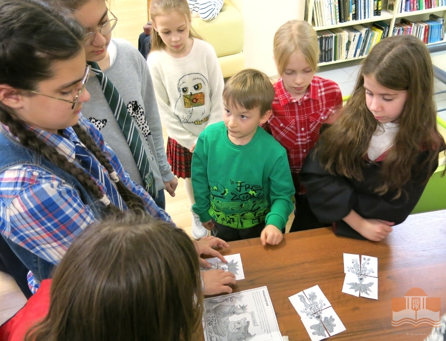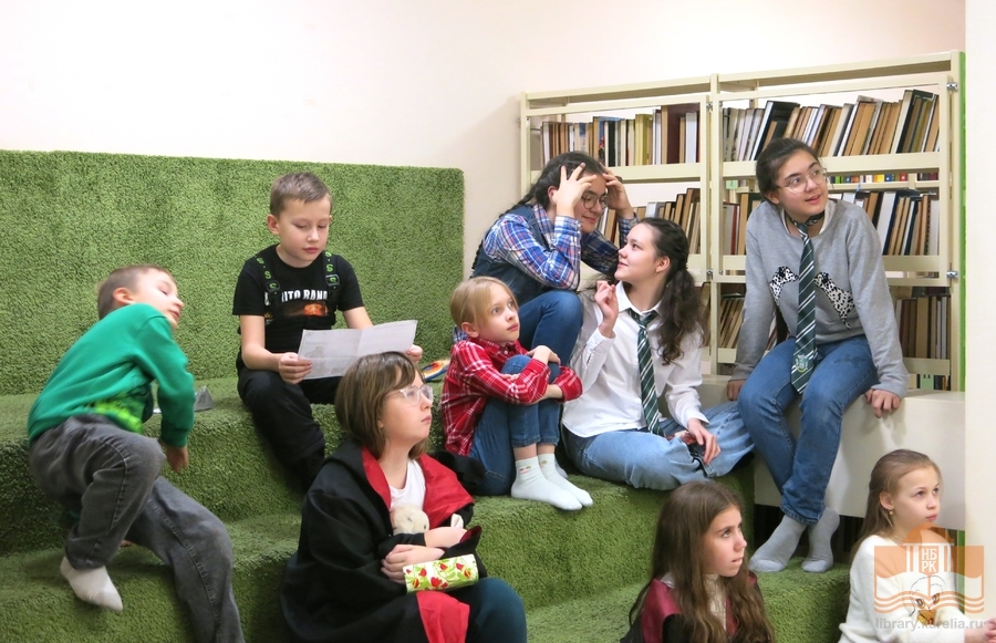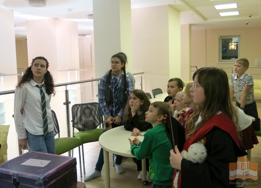 28 декабря в клубе «Дорога в Хогвартс» любители саги о Гарри Поттере участвовали в праздничном новогоднем квесте. В самом начале программы ребята получили письмо из Хогвартса от Дамблдора о помощи: некий злой волшебник придумал новое непростительное заклятие, которое запрещено использовать в мире магии. Но этот злодей вырвал страницу с заклятием из магической книги и спрятал. Оно покрыто особой защитой – его могут обнаружить только маглы (то есть не волшебники). Юные поттероманы сразу бросились на помощь Дамблдору и Гарри Поттеру. Выполнив ряд заданий, они нашли заклинание и уничтожили его. Всем было интересно и весело!