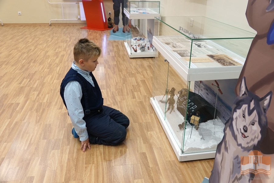 Цель выставки: воспитание чувства сопричастности к истории освоения Арктической зоны, патриотизма и гордости за Арктику. Выставка призвана сориентировать маленьких и взрослых читателей в информационном поле, ознакомить с книжным фондом библиотеки, побудить к познанию и творчеству. В составе выставки одиннадцать информационных стендов, пять стеклянных витрин с предметным рядом, интерактивная зона с микроскопом и две фотозоны.