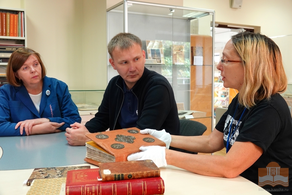 В ходе встречи обсуждался опыт взаимодействия между Национальной библиотекой и филиалом фонда. Гостям представили современные технологии самообслуживания читателей, а также тактильные издания Национальной библиотеки Карелии: «Ордена и награды Великой Победы», «Петрозаводск – город воинской славы» и «Мой бренд – Карелия». В секторе редких книг и работы с книжными памятниками они ознакомились с рукописным Евангелием XIV века, книгой «Летописец Соловецкий» XVIII века и другими уникальными изданиями из фонда библиотеки.