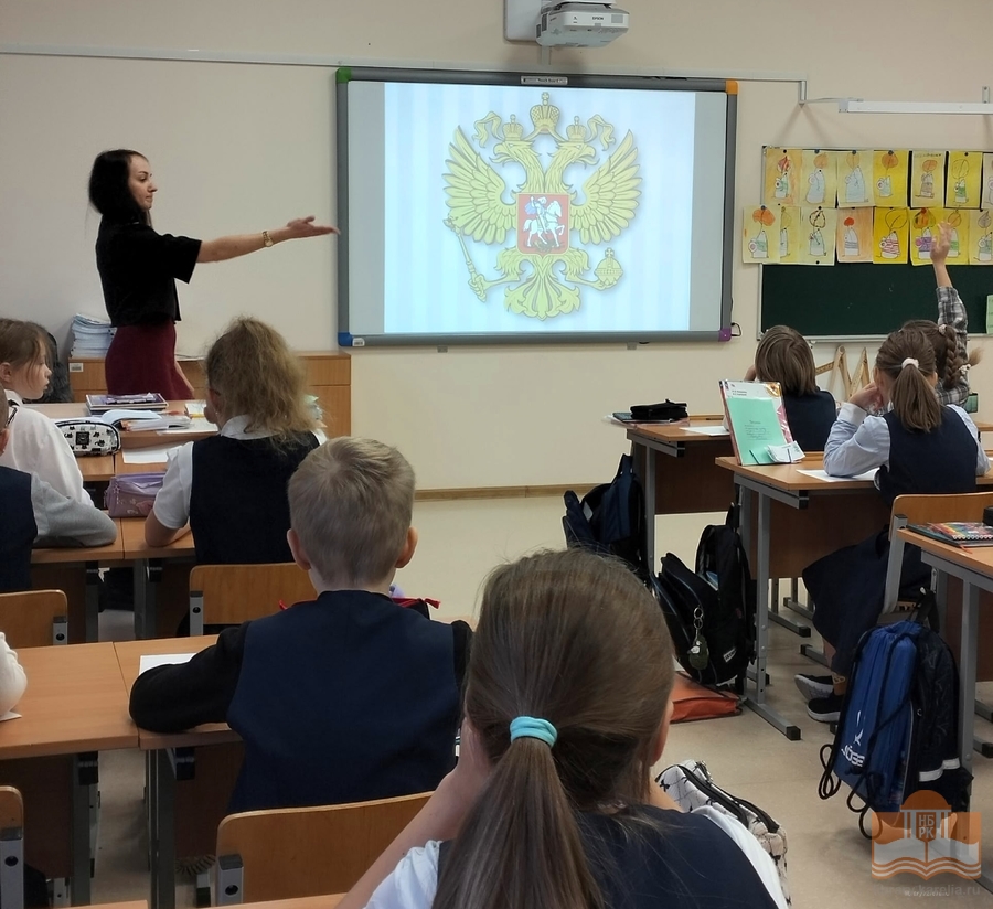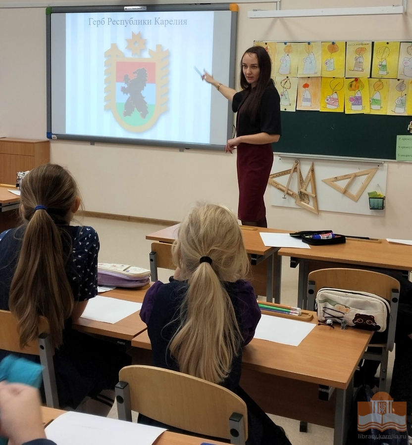 Ольга Викторовна Видута, заведующий информационно-справочным отделом, рассказала о значении каждого элемента герба Российской Федерации, об истории герба Республики Карелия. Ребята обсудили значимость государственных символов, включая флаг и гимн, и проверили знание текста гимна. В завершение участники программы придумали и создали гербы своих семей.