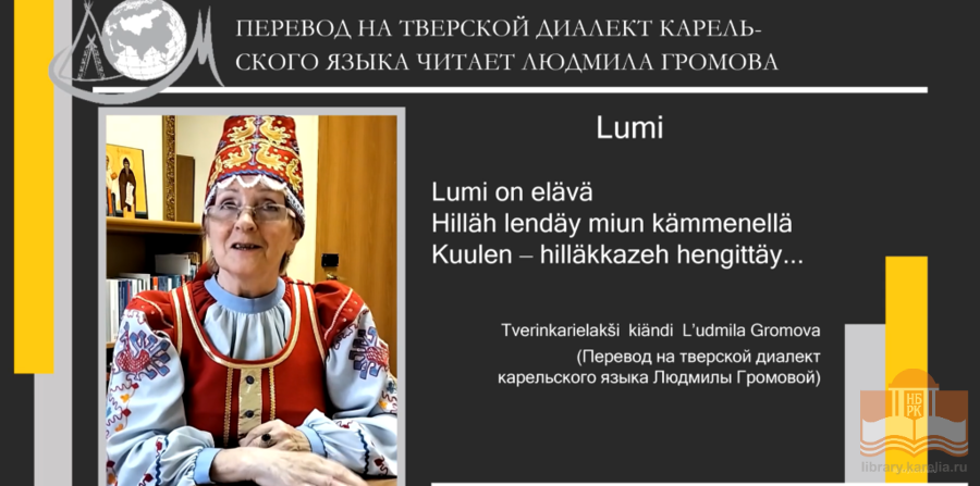 Автор стихотворения «Снег» – Любовь Миляева (Лыткина), оно переведено на 18 языков, 39 диалектов и говоров финно-угорских народов, в том числе на все наречия карельского, вепсский, ижорский, венгерский, мансийский и многие другие.
