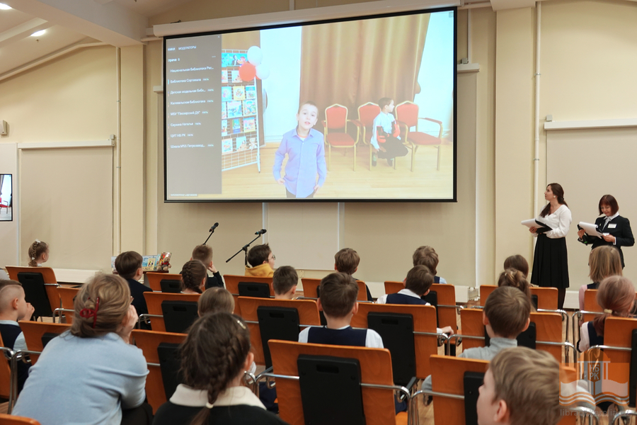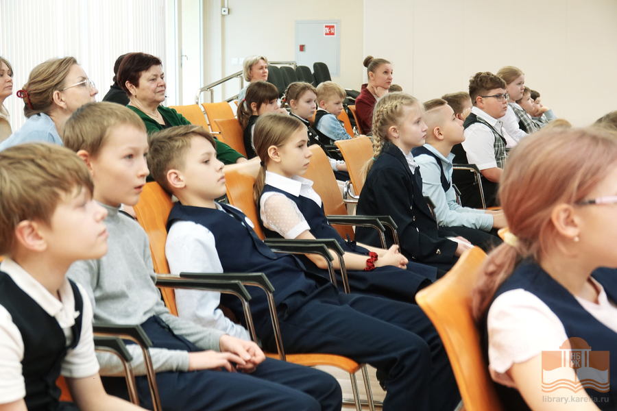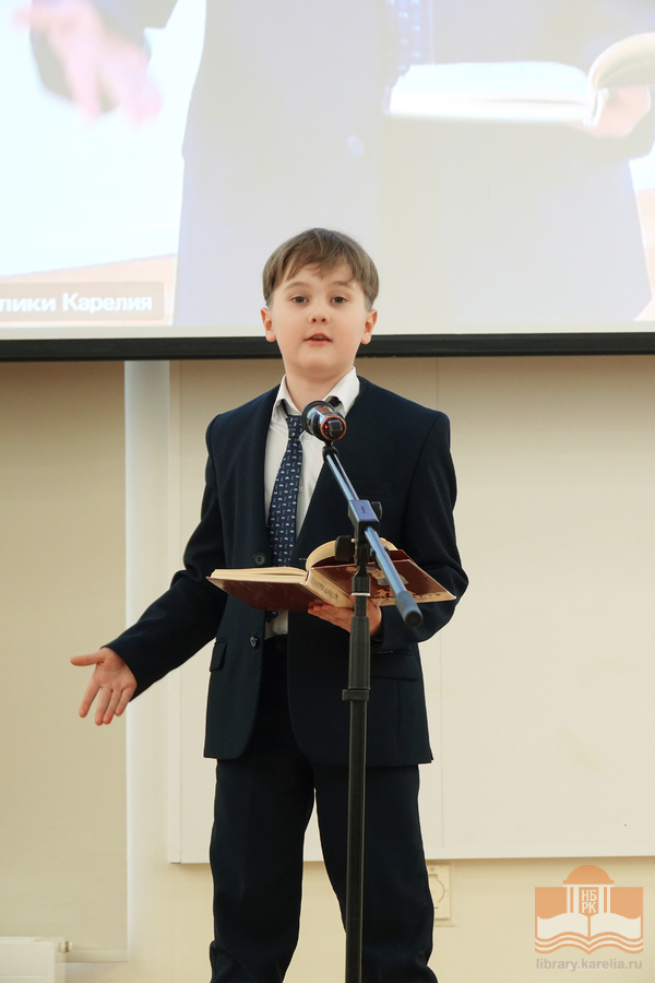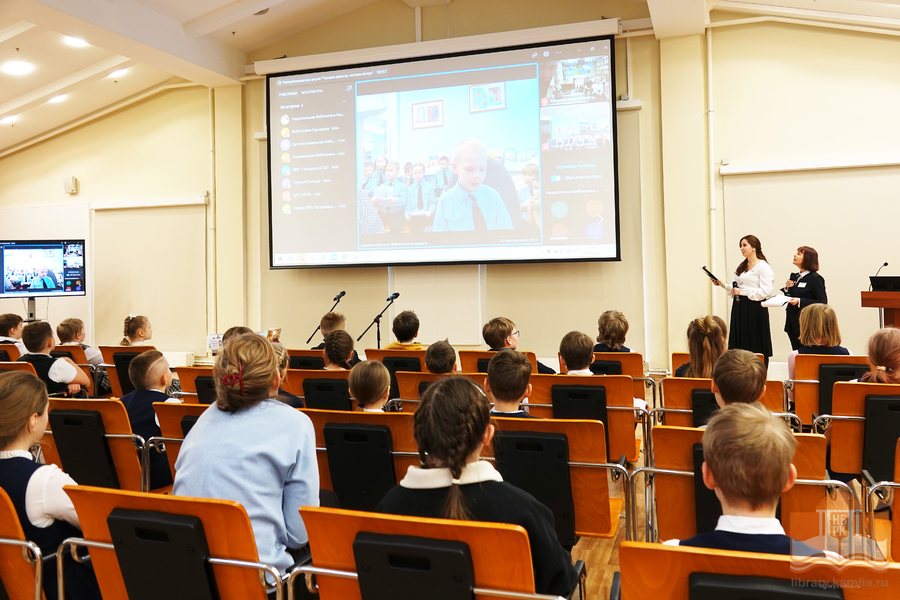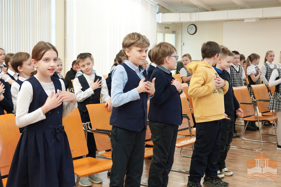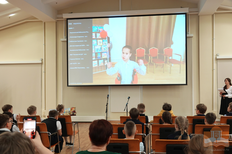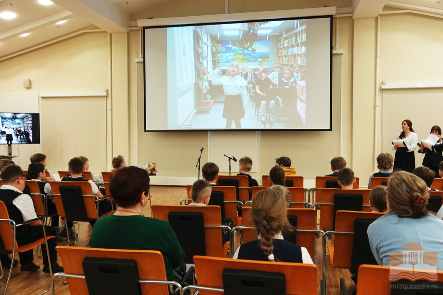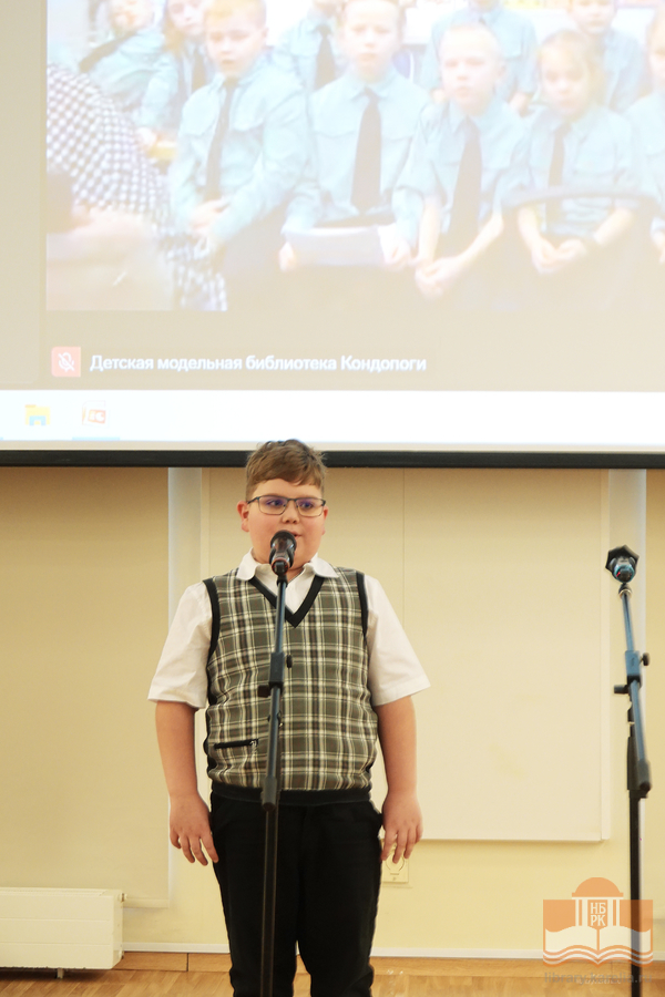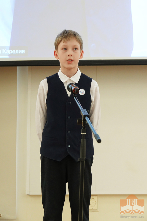 Именно в этот день, ровно в 12:30 к юным чтецам из петрозаводской гимназии № 30 и школы № 25, которые находились в конференц-зале Национальной библиотеки Карелии, в формате онлайн-участия присоединились читатели из районов Карелии.