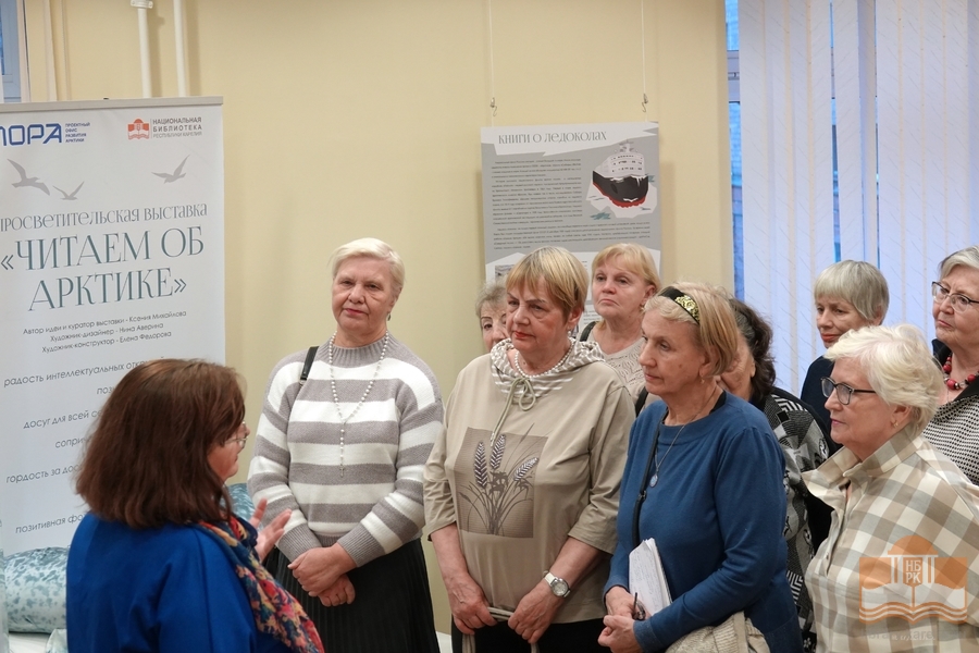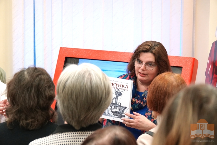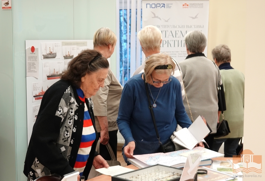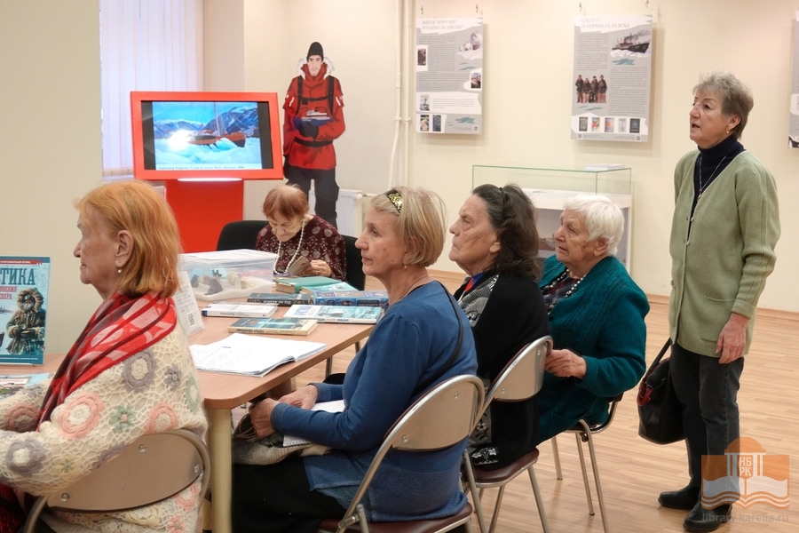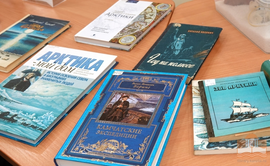 Множество интересных книг было представлено в выставочном зале библиотеки! Участники встречи смогли полистать книгу «Карельские полярники», изданную в 1935 году, и альманах «Карелия» за 1938 год, в котором опубликована «Руна о советском богатыре Иване Папанине». С удивлением узнали, что современные археологические исследования подтверждают возможность существования в прошлом «Земли Санникова», красочно описанной в романе В. Обручева. Большой интерес вызвали современные издания: сборник «Арктика за гранью фантастики» и «Полярные дневники» Виталия Воловича. С ностальгией участники встречи воспоминали книгу «Два капитана» Вениамина Каверина, написанную на основе воспоминаний участников полярных экспедиций Г. Я. Седова (1877–1914), Г. Л. Брусилова (1884–1914) и В. А. Русанова (1875–1913).