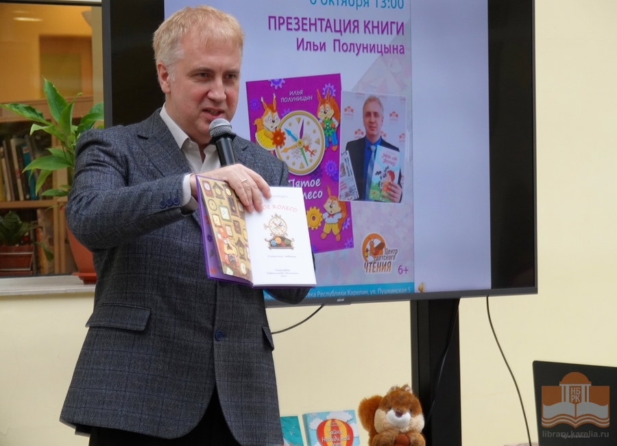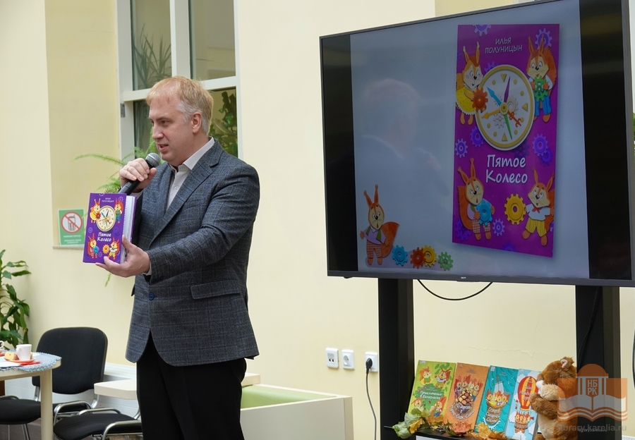 6 октября в Национальной библиотеке Республики Карелия состоялась презентация новой книги Ильи Викторовича Полуницына «Пятое колесо». Илья Полуницын – автор замечательных сказок, стихов, загадок, победитель нескольких международных литературных конкурсов. Его книги о приключениях друзей-бельчат, о расследованиях Следопяткина и компании, сказки кухонного шкафа и другие замечательные истории покорили многих юных читателей.