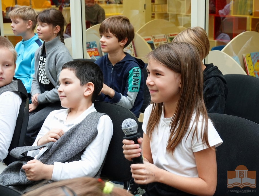 Вместе с автором и сказочными персонажами – Тюрри, Тяпом и Пымпышпоней, участники мероприятия прочитали отрывки из любимых произведений, поиграли в занимательные игры и приняли участие в весёлом беличьем флешмобе. Ребята получили массу положительных эмоций от встречи, они с большим удовольствием задавали вопросы писателю, а самые интересные вопросы были отмечены призами.