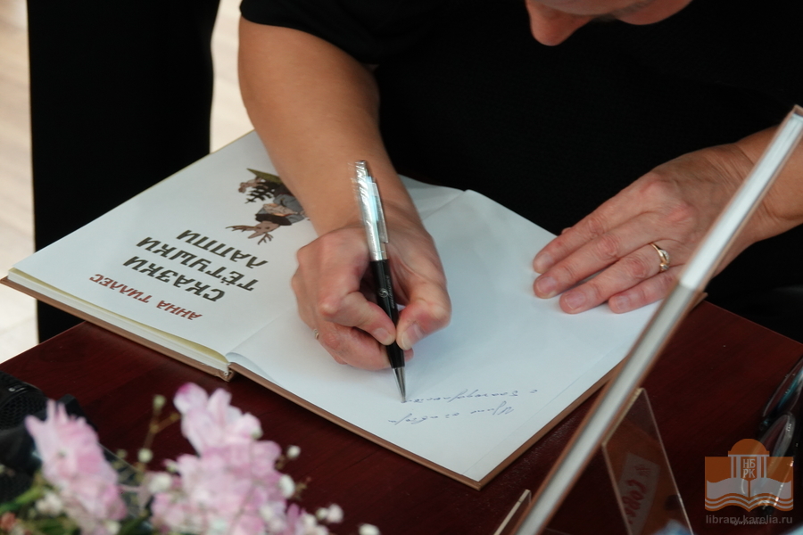 Автор рассказала о том, как родилась идея написать эту книгу, о плодотворном сотрудничестве с художником-иллюстратором сборника сказок Дмитрием Дмитриевым, издательством «Verso», о дружбе с жителями деревни Лижма, и, конечно, как появился на свет образ главной героини сказок – тётушки Лаппи. Весь год бродит Лаппи тропинками карельскими, чтобы новые сказки собрать да добрым людям о них рассказать. Сказочные истории повели участников презентации по заповедным местам Карелии: к самой высокой горе Нуорунен, в Заячье предлесье, к Елисеевой горе. Коварные персонажи книги: Свирепая Моль и Карачун нагнали сказочного ужаса и заставили у всех присутствующих «мурашки бежать по коже». Завершилась презентация приобретением долгожданной книги в домашнюю библиотеку и автограф-сессией от автора и тётушки Лаппи.