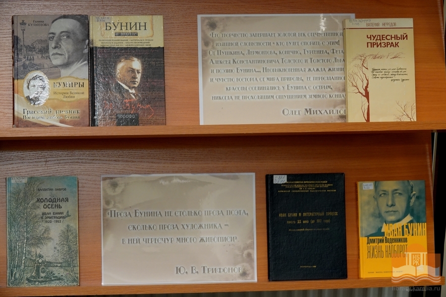 К 155-летию со дня рождения И.А.Бунина» на абонементе Национальной библиотеки Карелии представлена книжная выставка «День мой догорел, но след мой в мире есть».