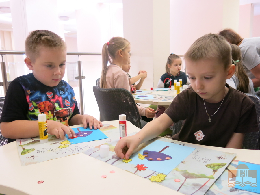 Юные читатели внимательно прослушали сказку Ивана Соколова-Микитова о маленьком зайчишке и узнали, почему осенних зайчат называют листопаднички. Ребята отправились в литературное путешествие по осеннему лесу: отгадали загадки про осенние приметы, проводили перелётных птиц в тёплые края, узнали, как лесные животные готовятся к зиме. Превратившись в жёлтые кленовые листочки, исполнили осенний танец, а затем, проявив свои творческие способности, создали осенний пейзаж.