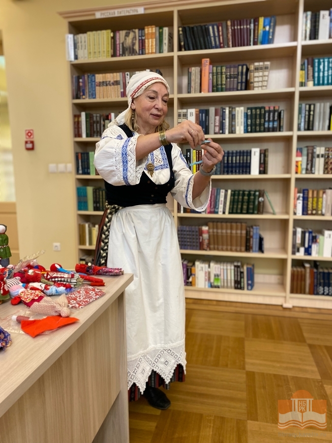 В конце творческой встречи мастерица продемонстрировала детям процесс изготовления карельской куклы. Ребята задали Маргарите множество интересных вопросов, и авторы лучших из них получили маленькие призы. Встреча получилась весёлой, познавательной и яркой, все участники программы получили массу положительных эмоций.