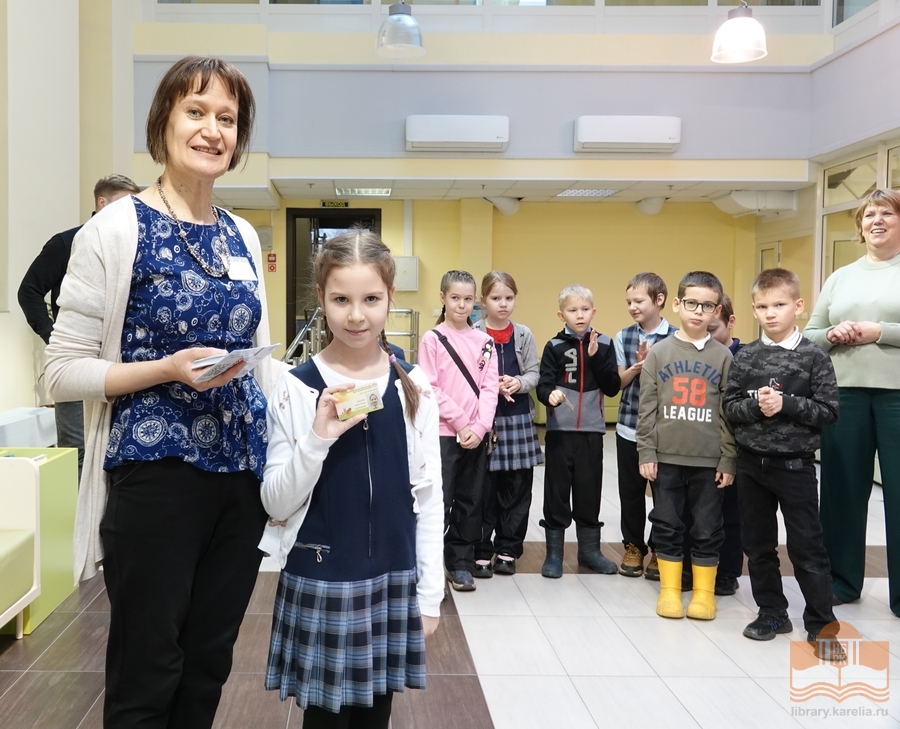 В отделе краеведческой литературы любознательные школьники услышали голоса птиц и зверей с помощью интерактивной «Красной книги Карелии». В Центре детского чтения гостям показали необычные книги: виммельбухи, издания с дополненной реальностью, энциклопедии про динозавров, книги-театры, книги с ароматными страничками. В завершение путешествия ребята в торжественной обстановке получили читательские билеты, пополнив ряды читателей Национальной библиотеки Карелии. С книгами, демонстрируемыми на экскурсии, можно ознакомиться по ссылке.
