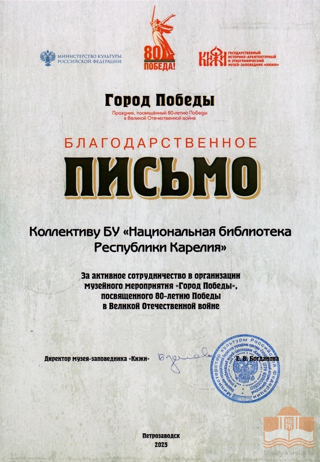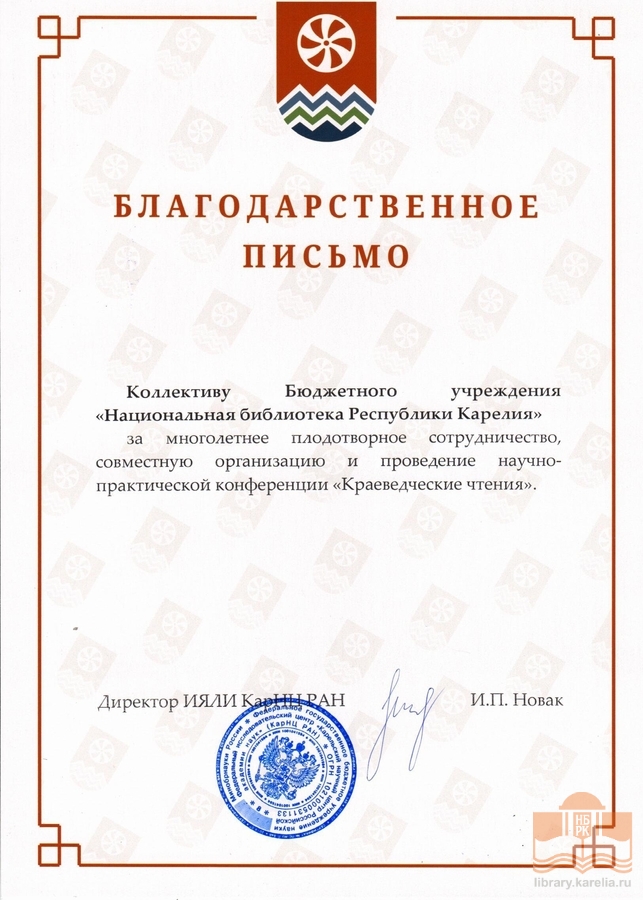 » Благодарности БУ «Национальная библиотека Республики Карелия»
