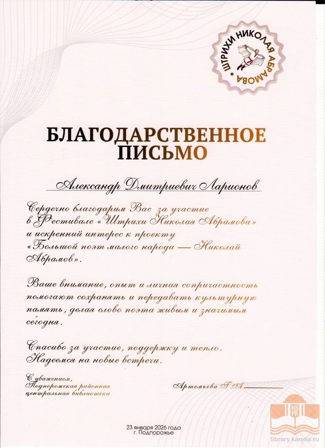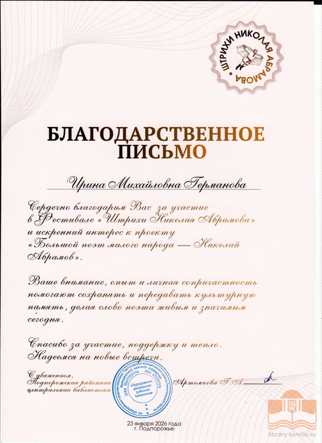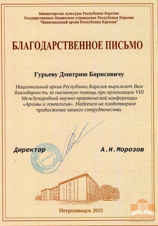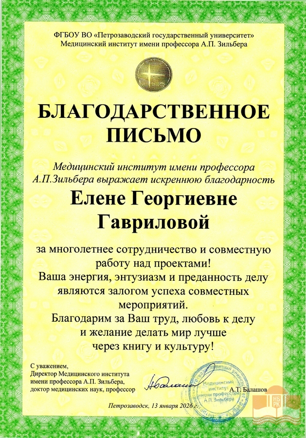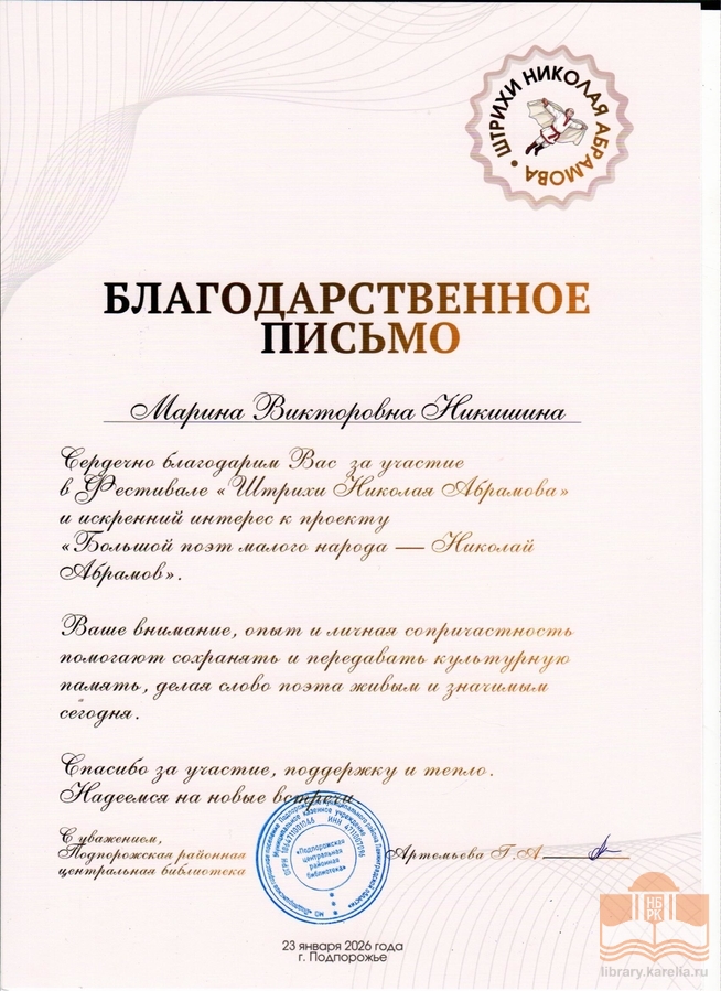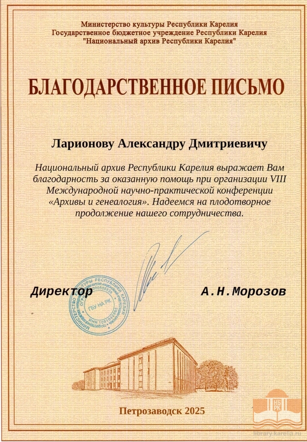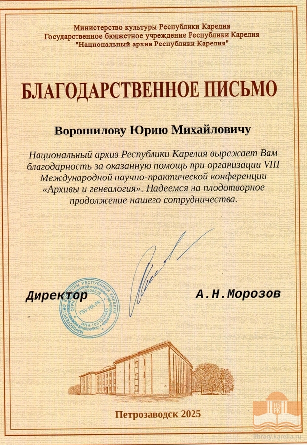 » Благодарности сотрудникам БУ «Национальная библиотека Республики Карелия»