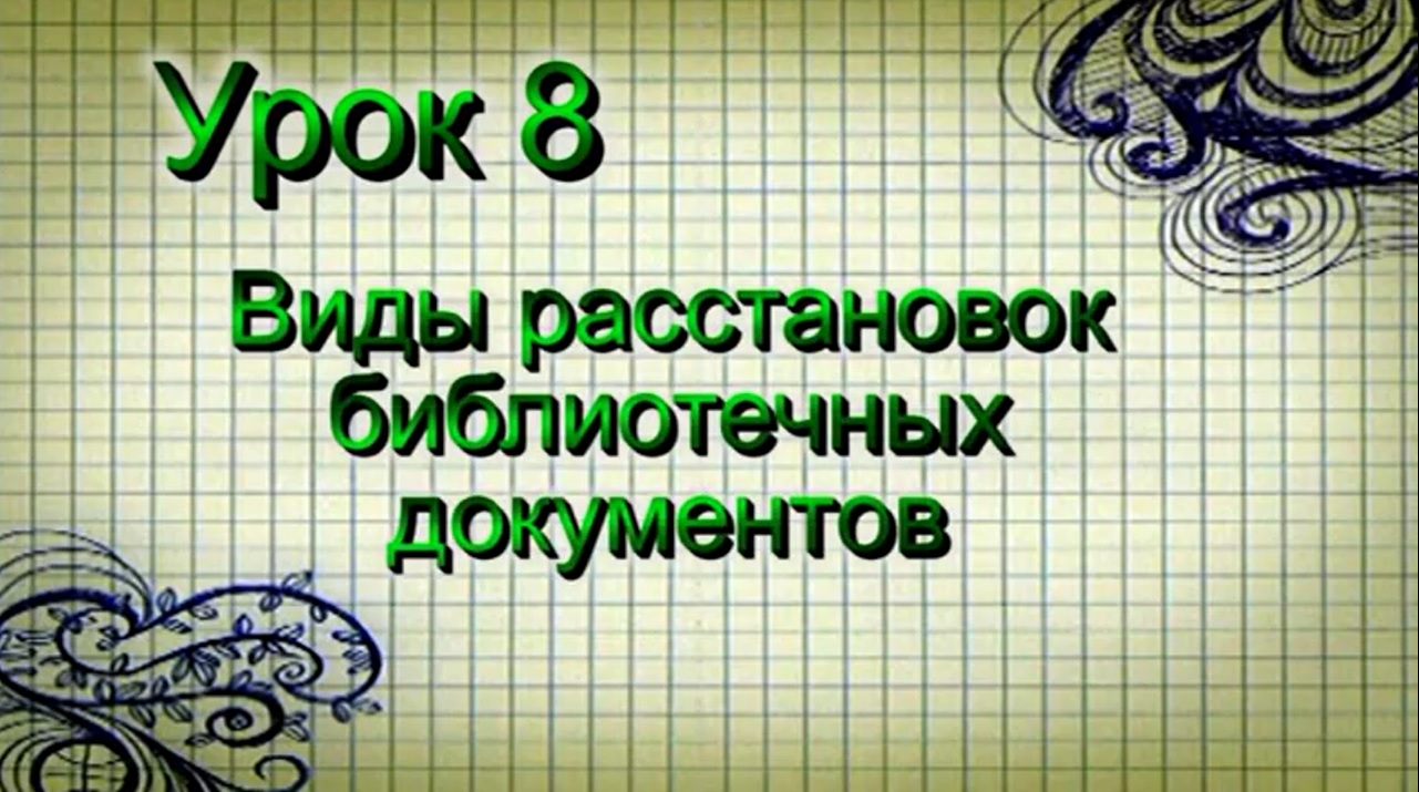 Видеоуроки "Сохранность библиотечных фондов", Урок 8, Виды расстановок библиотечных документов / Национальная библиотека Республики Карелия ; составлен Богдановой Л. Б. ; ведет Ганьжакова Г. Н. - Петрозаводск : НБ РК, 2012. - 1 видеофайл (11 мин 20 с) : зв., цв. - (Виртуальный методический кабинет. Мастер-классы). - URL: https://goo.su/x7PQH (дата обращения: 19.11.2025). - Режим доступа: Видеохостинг Rutube, свободный. - Изображение(исполнительское; движущееся; двухмерное) : видео