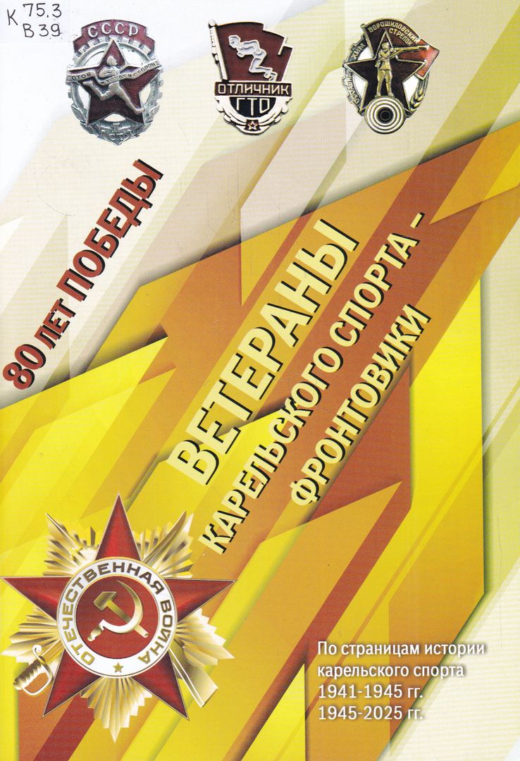 В 39 Ветераны карельского спорта - фронтовики : сборник / В. Ф. Киселев, П. И. Петров, А. М. Воронов [и др.] ; под редакцией Е. А. Шорохова ; Министерство образования и спорта Республики Карелия, Олимпийский Совет Республики Карелия, Музей истории спорта Карелии. - Издание 3-е, дополненное. - Петрозаводск : [б. и.], 2025. (Петрозаводск : RKPrint. - 83 с. : ил., портр., фот. ; 21 см. - (По страницам истории карельского спорта, 1941 - 1945 гг., 1945 - 2025 гг.). - Посвящается 80-летию Великой Победы. - Текст : непосредственный