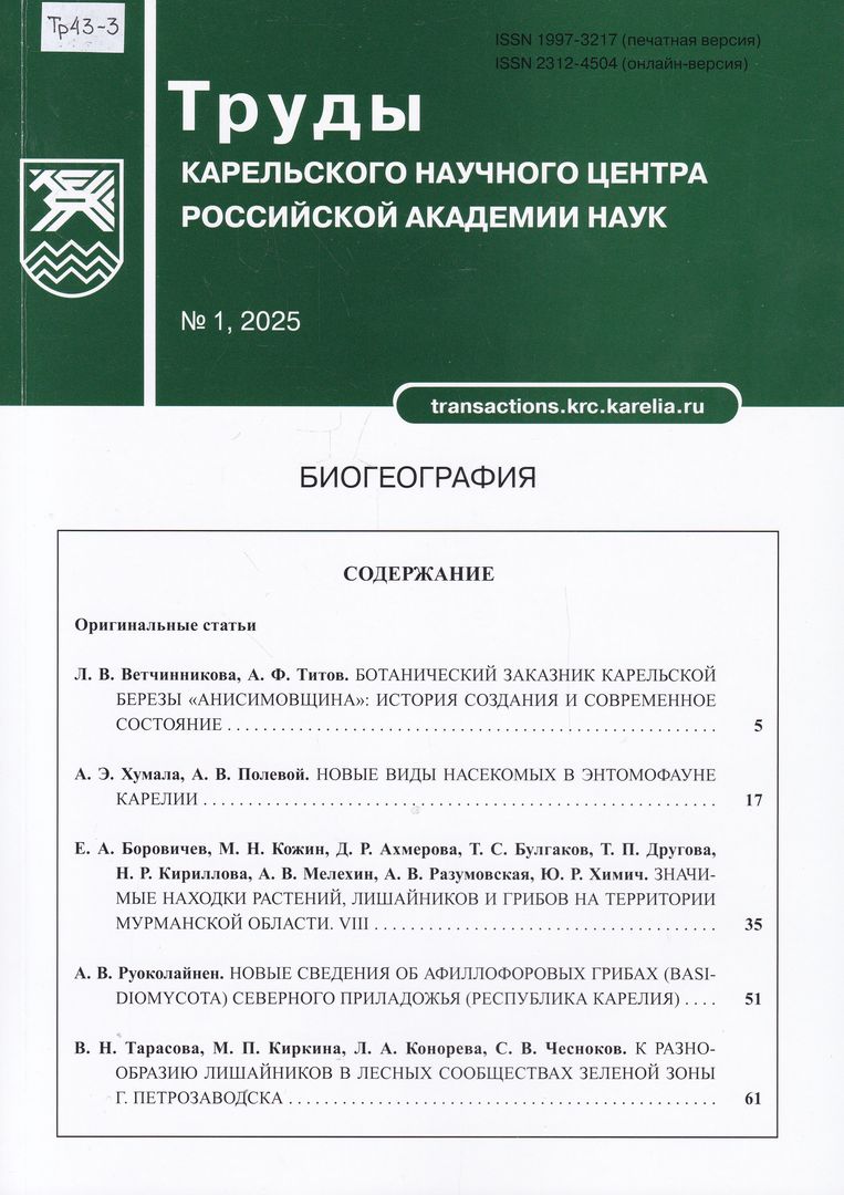Труды Карельского научного центра Российской академии наук. Серия: Биогеография / главный редактор А. Ф. Титов. - Петрозаводск : Карельский научный центр РАН, 2015