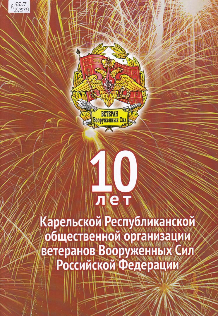 Д 379 10 лет Карельской Республиканской общественной организации ветеранов Вооруженных Сил Российской Федерации : [фотоальбом / вступительные статьи: В. Ф. Ермаков, В. С. Константинов]. - Петрозаводск : [б. и.], 2025. - 52 с. : фот., цв. фот. ; 30 см. - Изображение(двухмерное; неподвижное). Текст : непосредственные