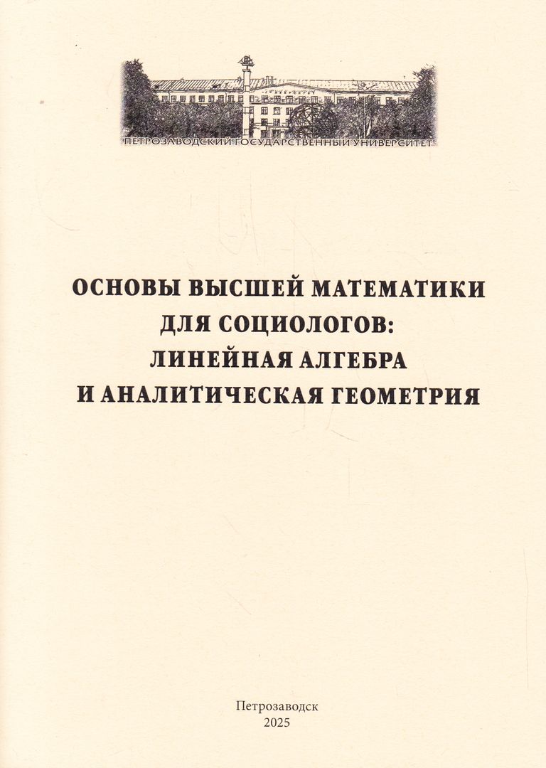 О-753 Основы высшей математики для социологов: линейная алгебра и аналитическая геометрия : учебно-методическое пособие для студентов, обучающихся по направлениям 39.03.01 "Социология", 39.03.02 "Социальная работа" / Министерство науки и высшего образования Российской Федерации, Федеральное государственное бюджетное образовательное учреждение высшего образования Петрозаводский государственный университет ; составители: Н. Н. Мотькина, О. А. Харлан. - Петрозаводск : Издательство ПетрГУ, 2025. - 35 с. ; 21 см. - Библиография: с. 35 (5 назв.). - ISBN 978-5-8021-4271-4. - Текст : непосредственный