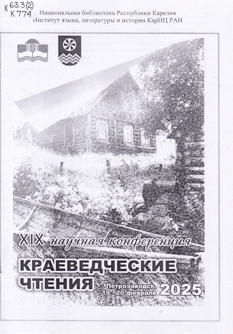К 774 Краеведческие чтения : XIX научная конференция, Петрозаводск, 19-20 февраля 2025. Культурное и научное наследие Карелии: преемственность традиции : программа. - Петрозаводск : Национальная библиотека Республики Карелия, 2025. - [12] с. ; 21 см. - В надзаголовочных данных: Национальная библиотека Республики Карелия, Институт языка, литературы и истории КарНЦ РАН. - Описано по обложке. - Текст : непосредственный